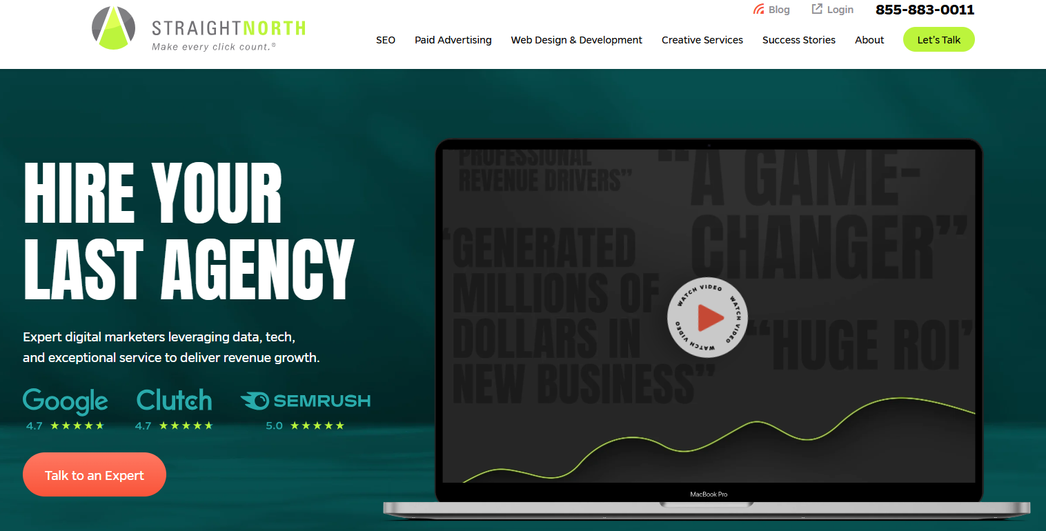 Straight North believes in clear pricing for all their work. Services begin at $1,500 monthly. Most clients spend between $4,000 and $8,000 each month to get detailed SEO strategies. This is a big deal as it means that larger, complex projects can cost over $40,000 monthly.