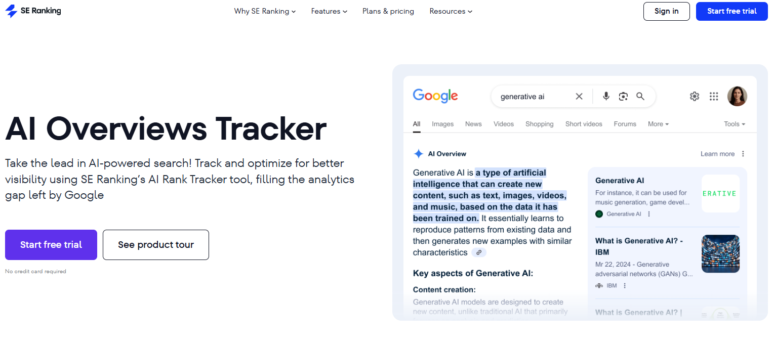 SE Ranking AI Overview Tracker will give you a direct window into your brand’s AI search presence in 2026. This complete platform tracks visibility across AI Overviews, AI Mode, and major chatbots like ChatGPT, Perplexity, and Gemini.
