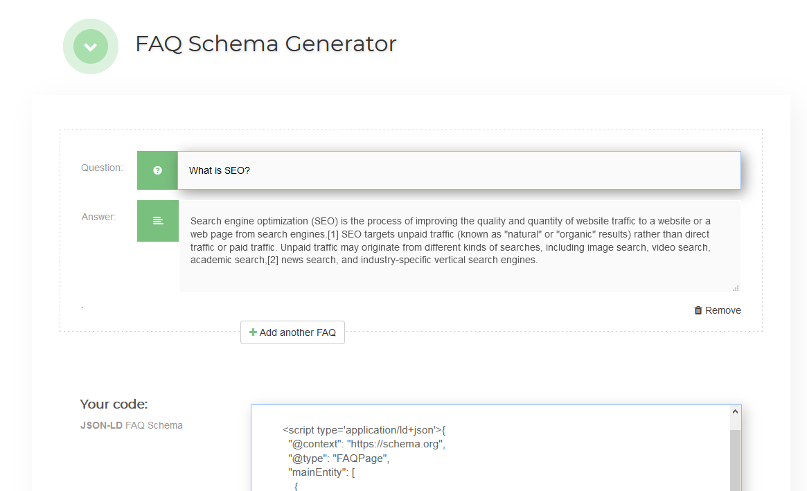 - Instant Generation – Turns your FAQs into properly formatted code right away