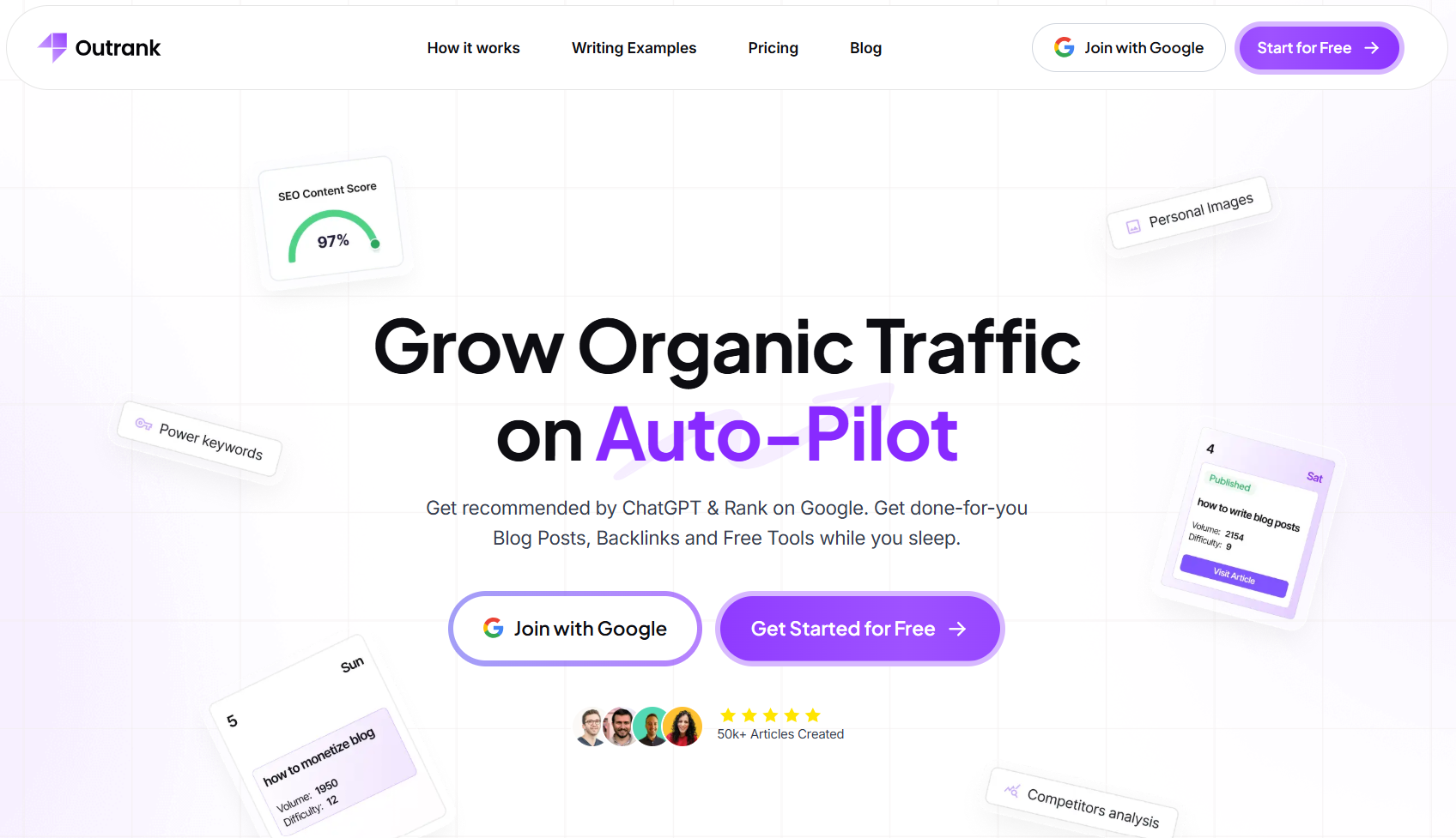 | Outrank Article | Competitor-based Content Generation SEO Optimization Search Intent Matching Simple Setup |