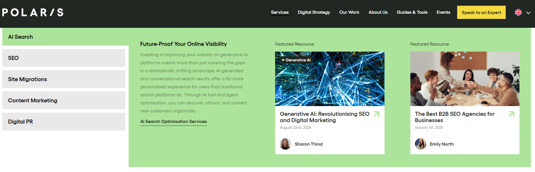 POLARIS is a UK-based SEO agency with deep experience in financial services. With a 10-year track record working with FTSE 100 and DOW 100 financial institutions, they specialize in improving visibility, trust, and performance for finance-focused websites.