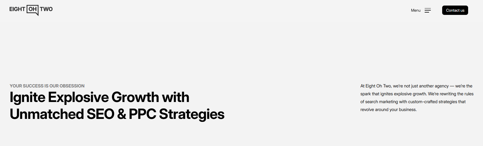 | Eight Oh Two | SEO, PPC Management, Content Marketing | Orvis Company, Simply Organic, Goal Zero | $100-$149/hour | Fintech Companies, Financial Enterprises | AI and human expertise combined, reader-centered approach |